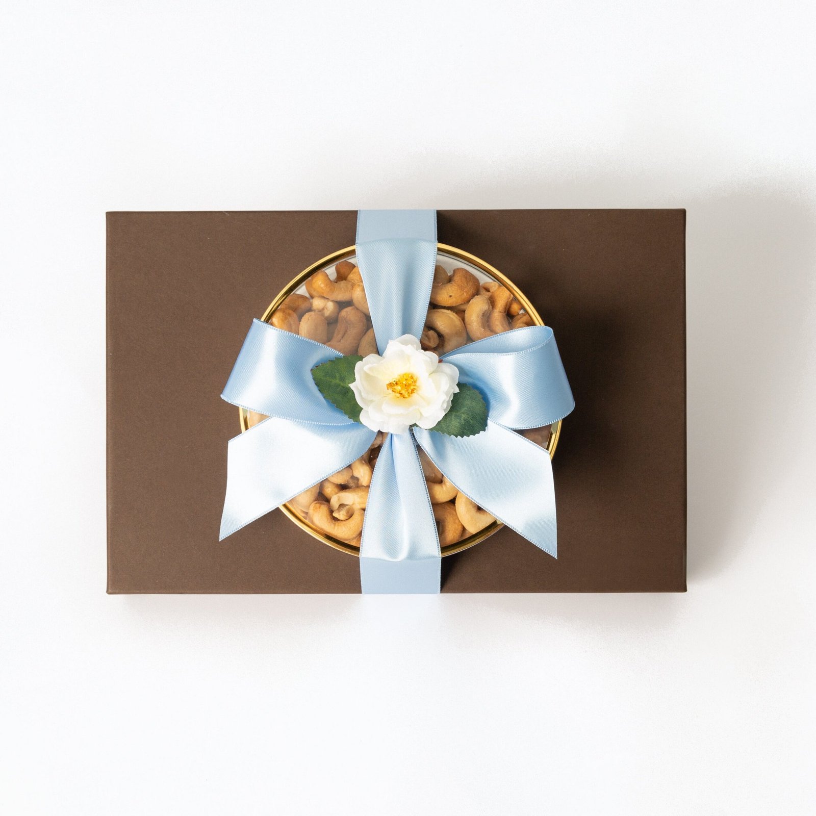 Our popular assortment of chocolates crowned with a clear box of delicious extra large cashews beautifully tied together with a bow and seasonal embellishment.