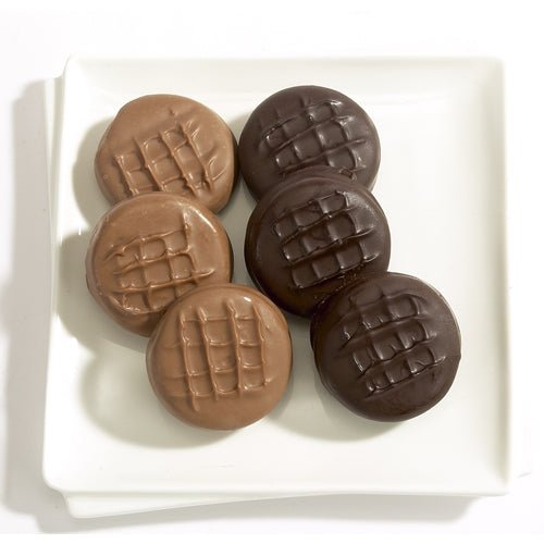 Everyones favorite chocolate cookie made twice as delicious when generously covered with our milk or dark chocolate.